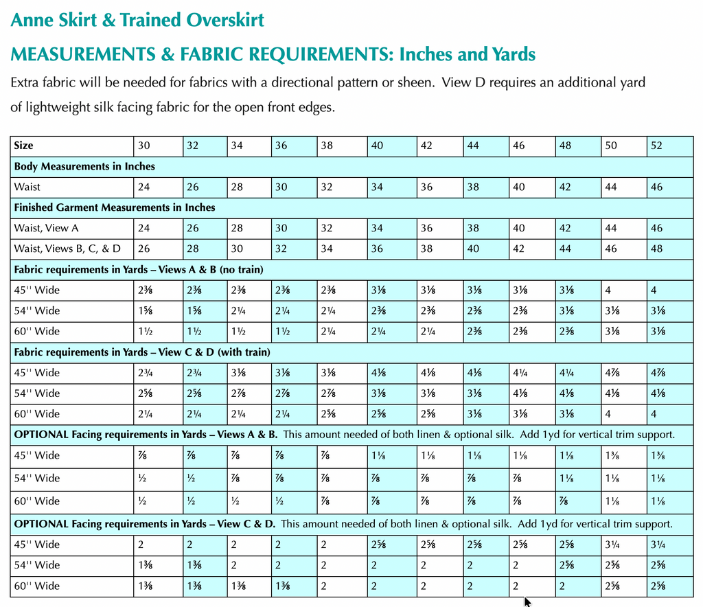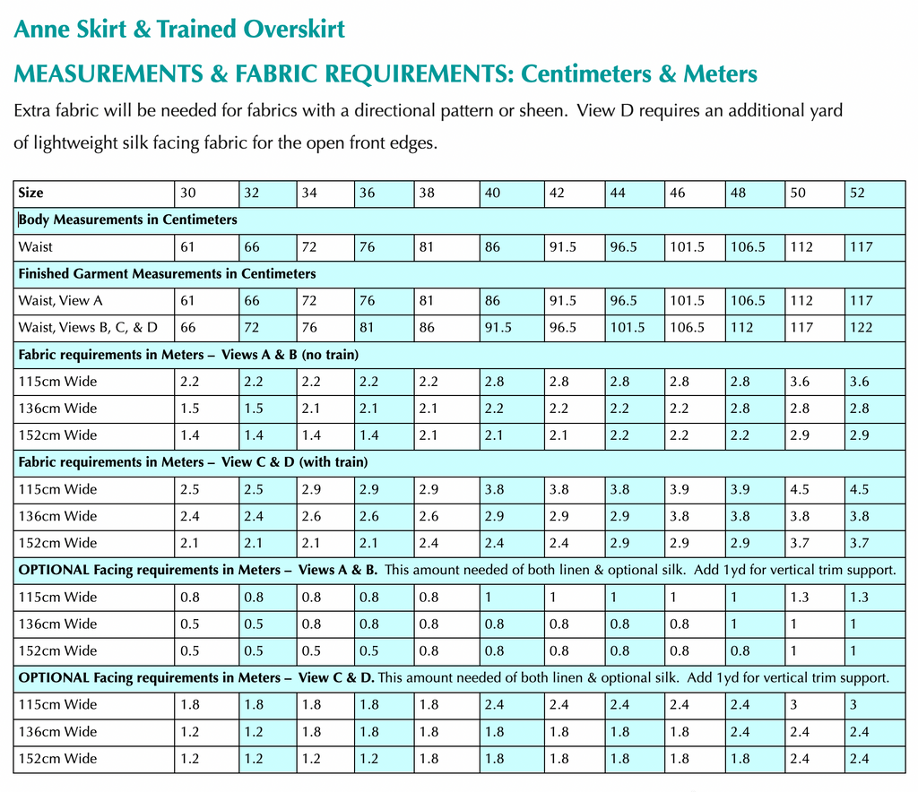 The instructions include options for knife pleats or cartridge pleats, and for a variety of historically accurate or plausible seam finishes, hem types, and trims to help you replicate the range of skirts seen in period images.