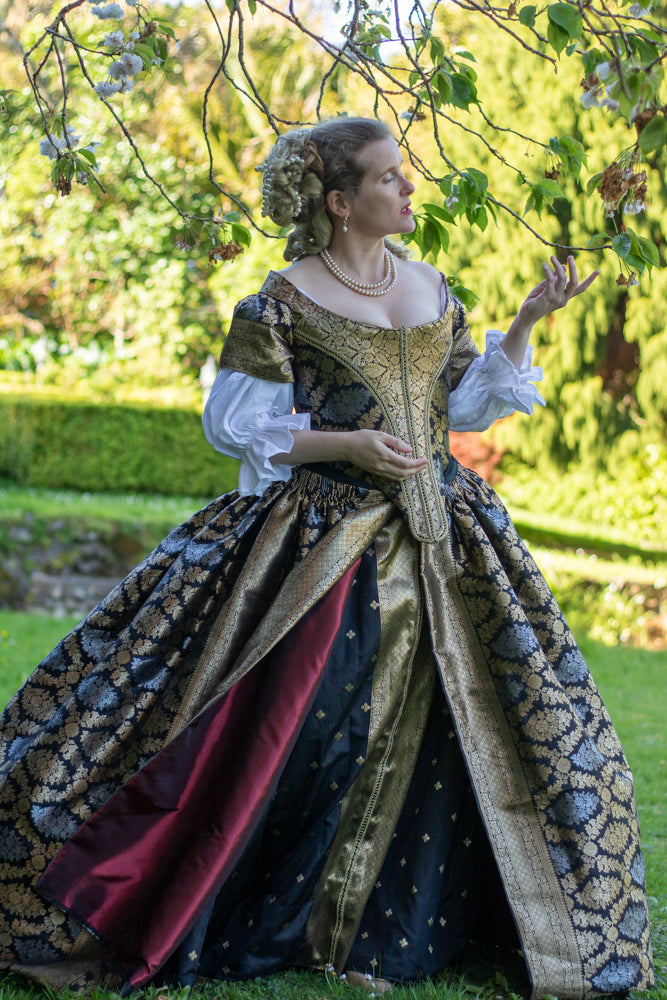 The Anne Skirt & Trained Overskirt is a lush, full, pleated skirt (called petticoats in-period) and overskirt pattern of the style worn with the elegant boned bodices or cozy jackets fashionable in the third quarter of the 17th century.